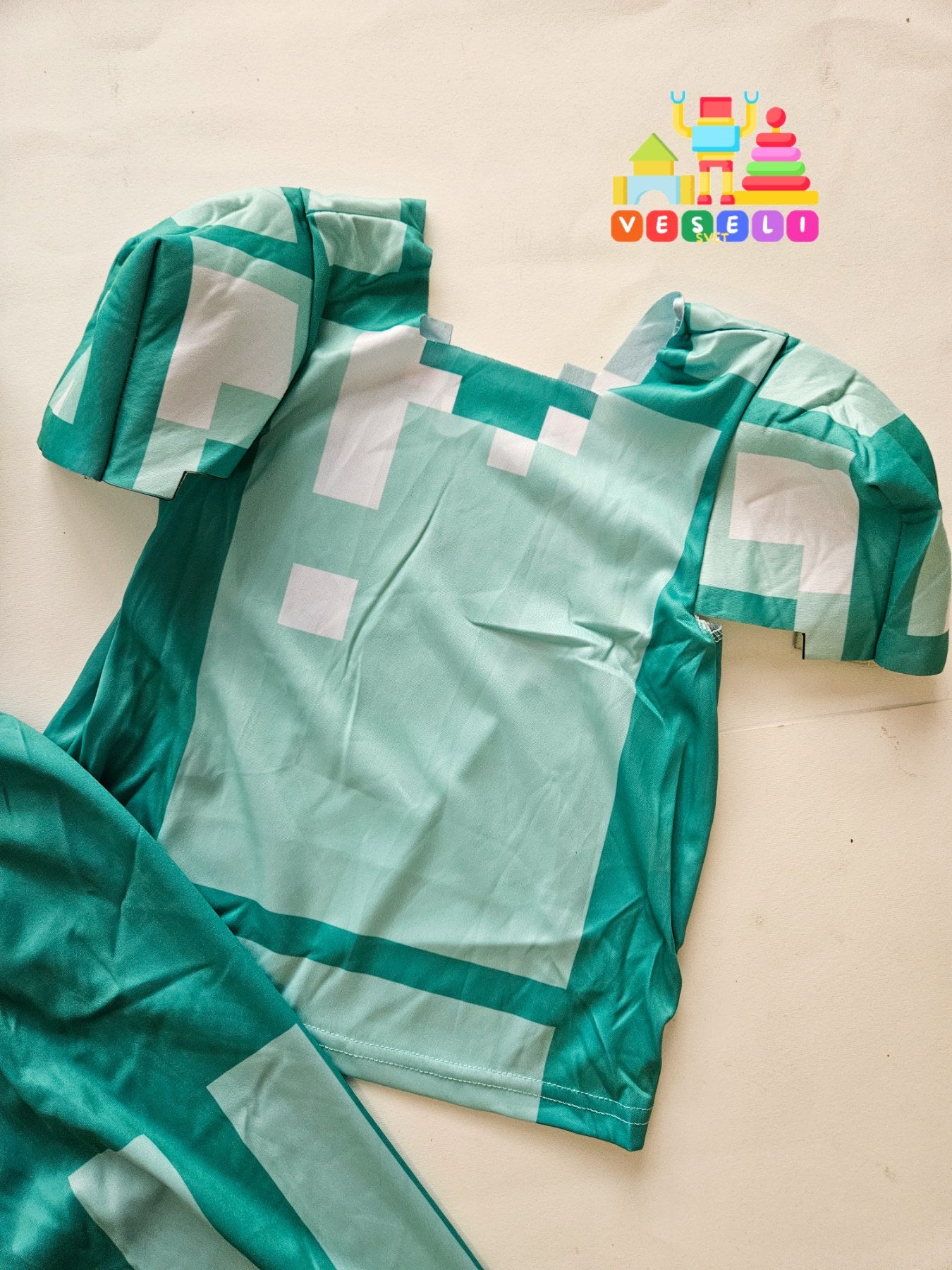 Ovaj prepoznatljivi dijamantski oklop iz igre prenesen je u realnost sa plavo-tirkiznim pixel dizajnom, ramenicama i kacigom koji oduševljavaju svakog Minecraft fana.