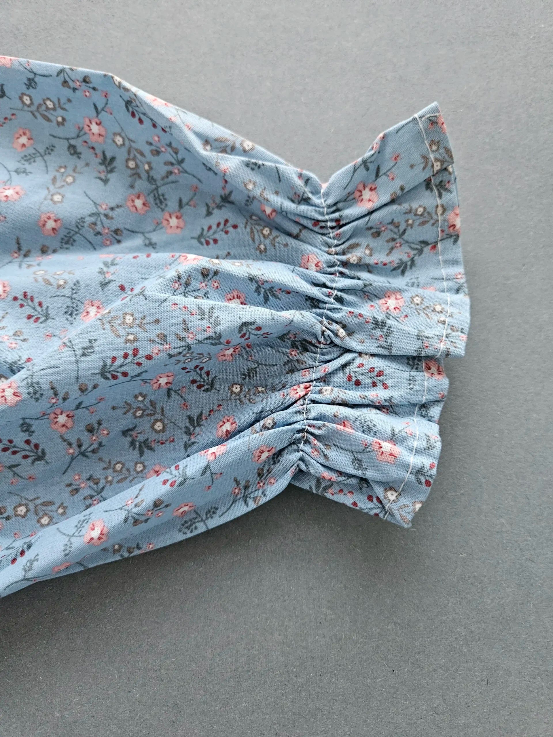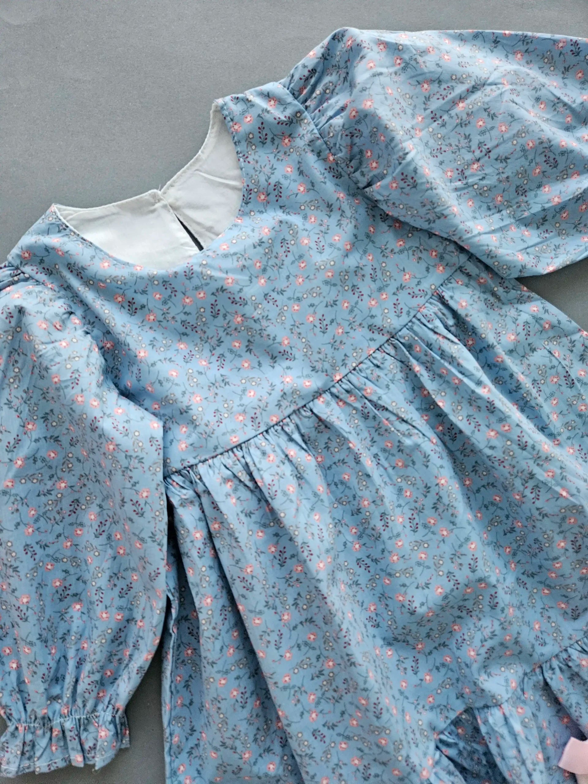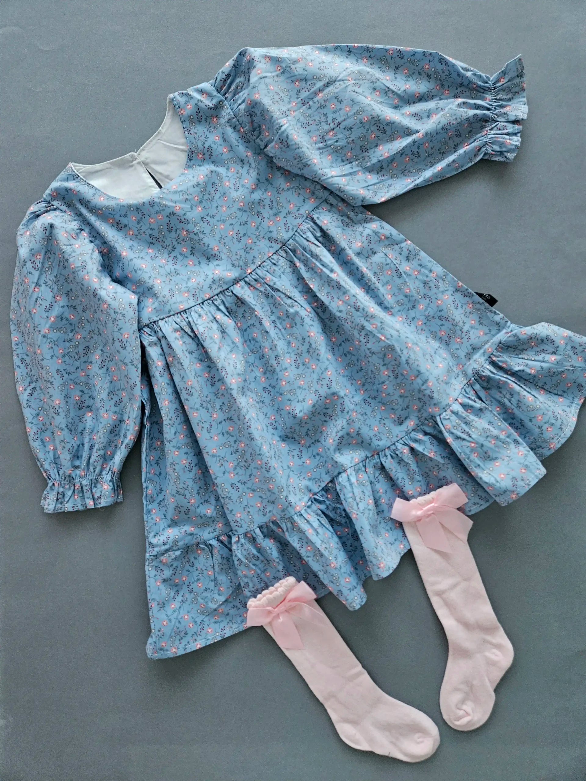 Haljina za devojčice Kaja u boho stilu, sa cvetnim dezenom, dostupna je u plavoj i roza varijanti. Sa karnerima, cvetnim dezenom, rukavima sa gumicom , odiše retro stilom. Izrađena od viskoze, veoma je prijatna za nošenje. Kopča se dugmencetom pozadi.