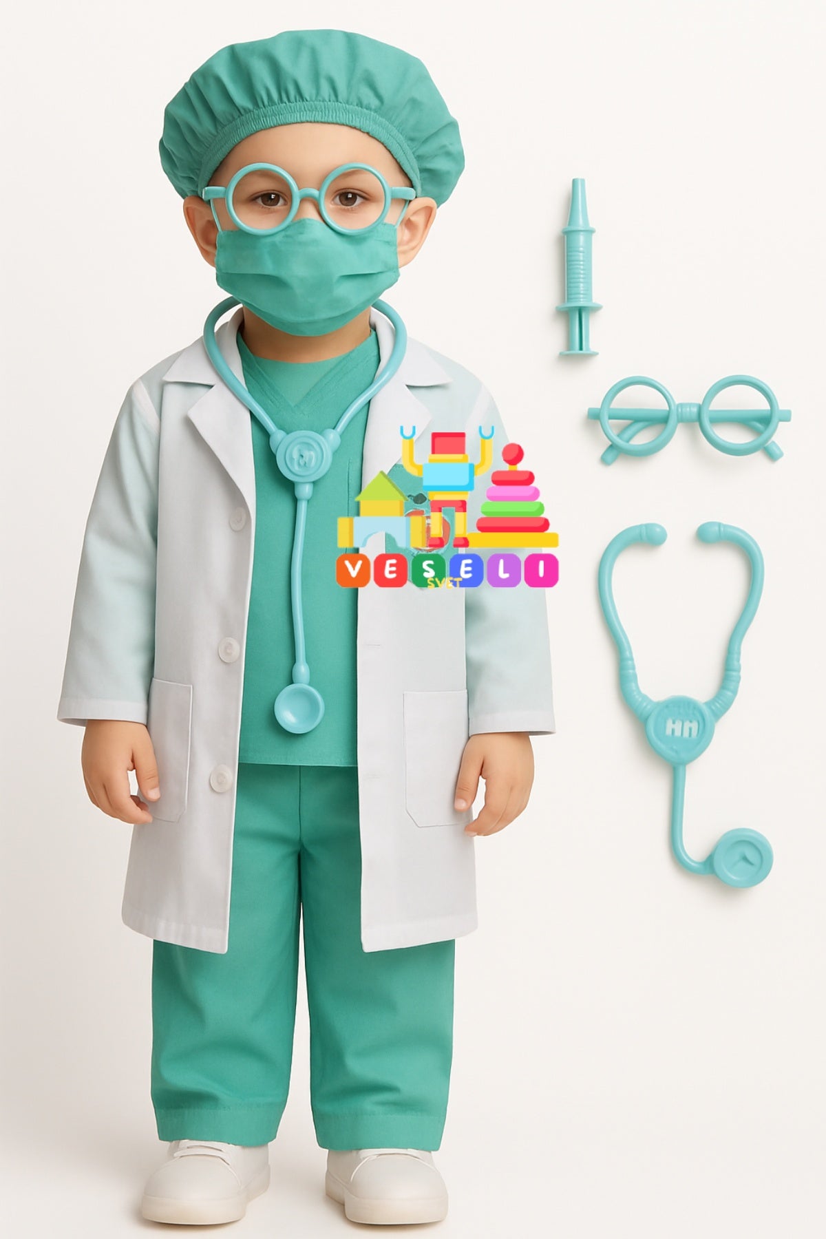 Uz ovaj sjajni kostim doktora, svaka mala maštalica može postati pravi mali doktor! Komplet uključuje beli mantil, uniformu, kapu i naočare, a tu su i svi medicinski rekviziti.