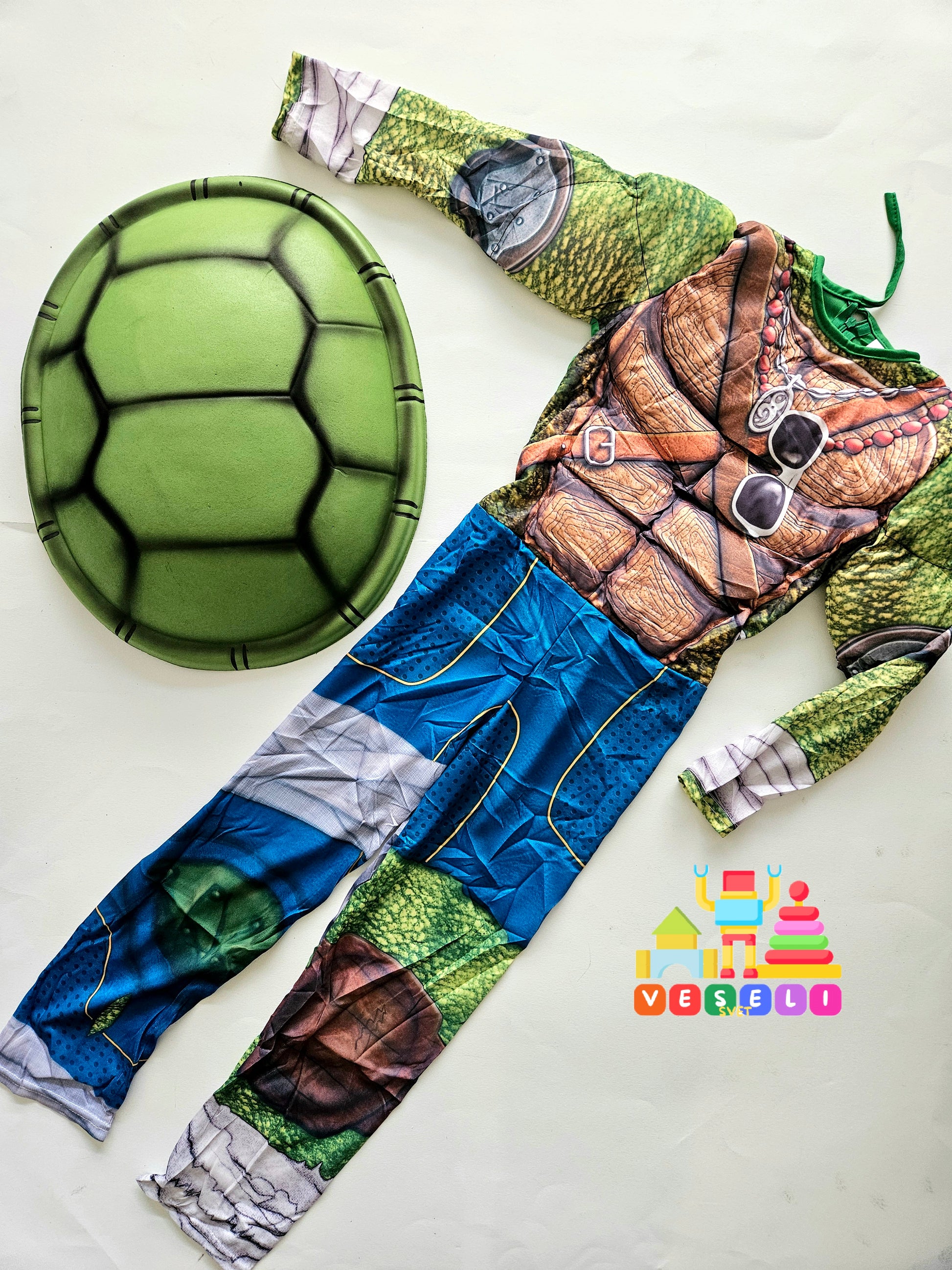 Pretvori svog mališana u pravog heroja iz uz ovaj fantastičan kostim Nindža Kornjače! Kostim je inspirisan popularnim crtanim junacima i sadrži sve što je potrebno za pravu avanturu — od mišićavog gornjeg dela do realističnog zelenog oklopa na leđima.