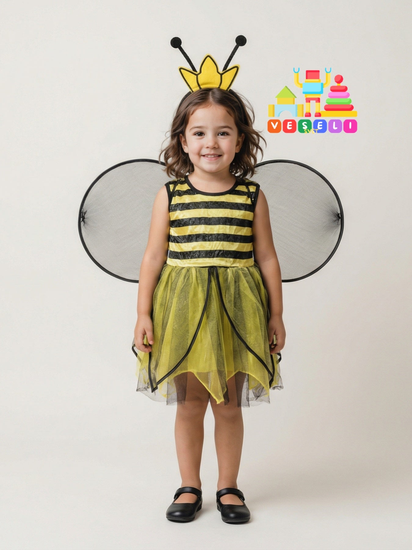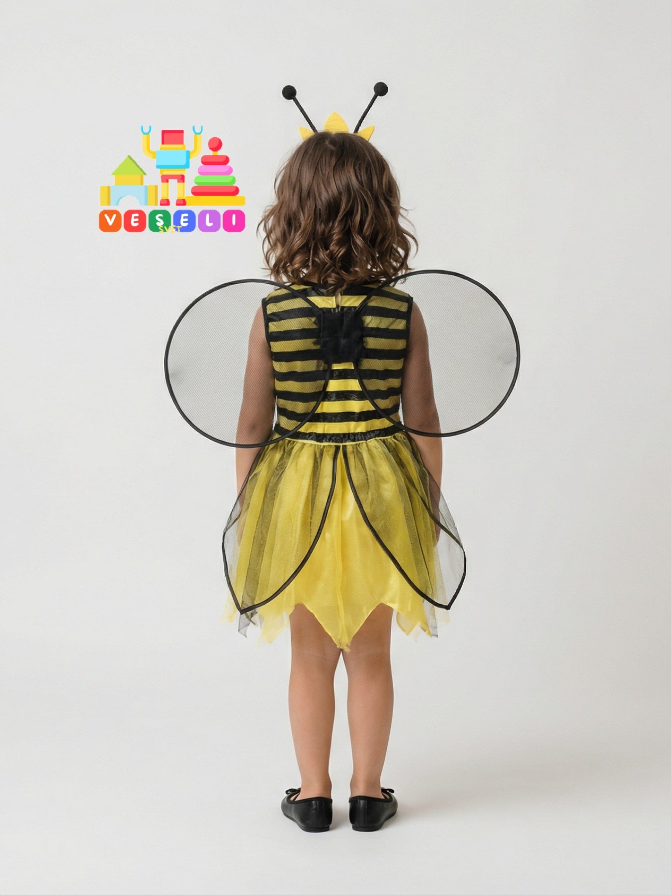 Set je upotpunjen laganim krilima i rajfom za kosu sa antenama, koji čine kompletan i prepoznatljiv pčelica stil.