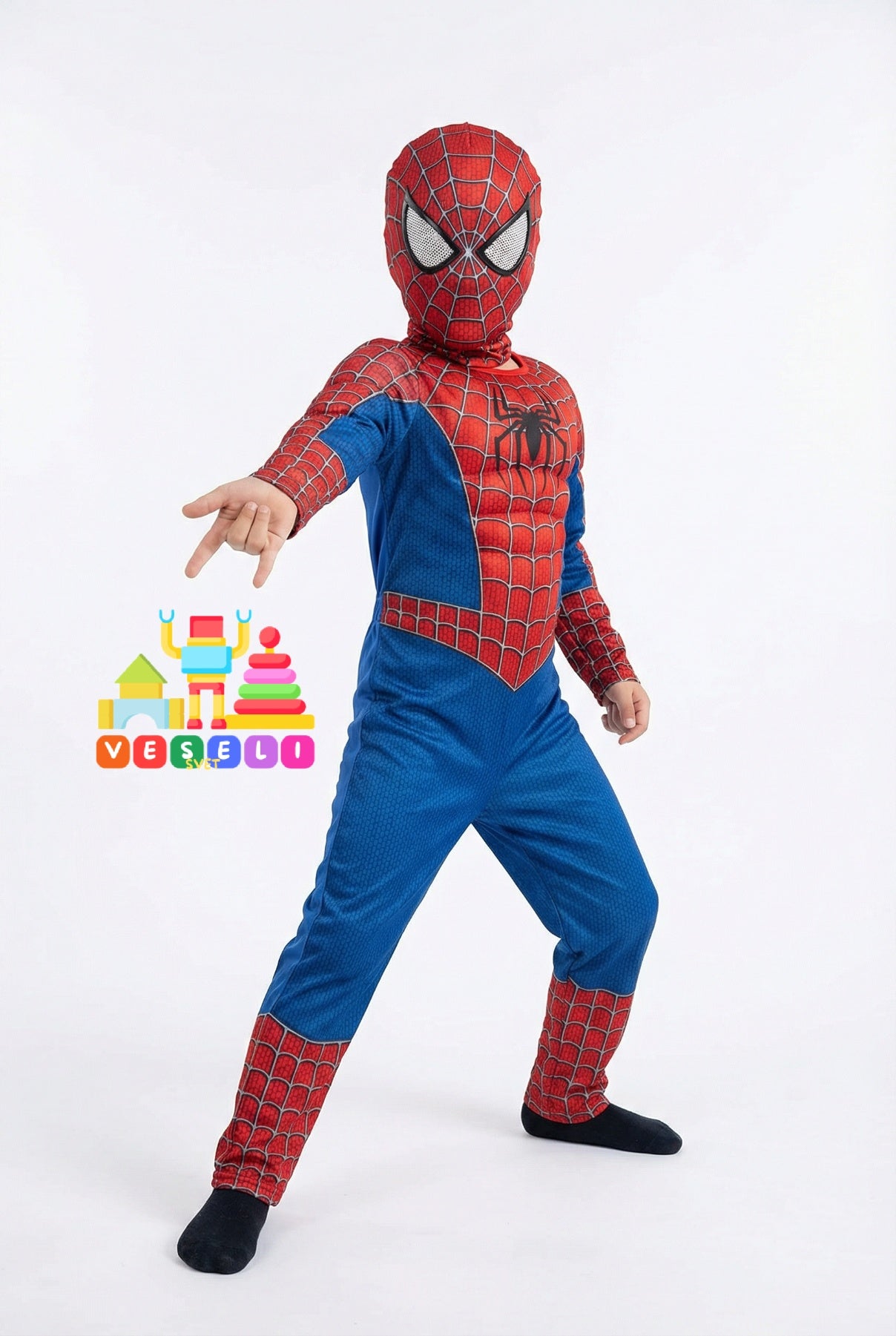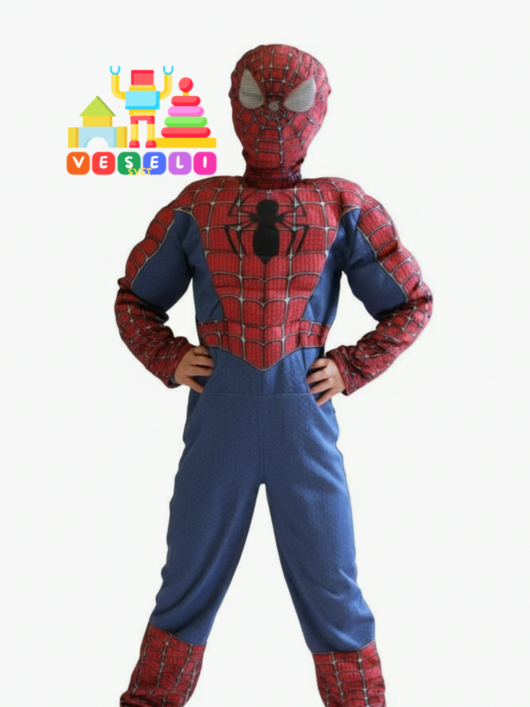 Kostim dolazi kao komplet – kombinezon sa jastučićima za efekat mišića i karakterističnim , kao i maska koja verno dočarava lik popularnog Spajdermena. Materijal je lagan i udoban, savršen za igru, maskenbale, rođendane i karnevale.