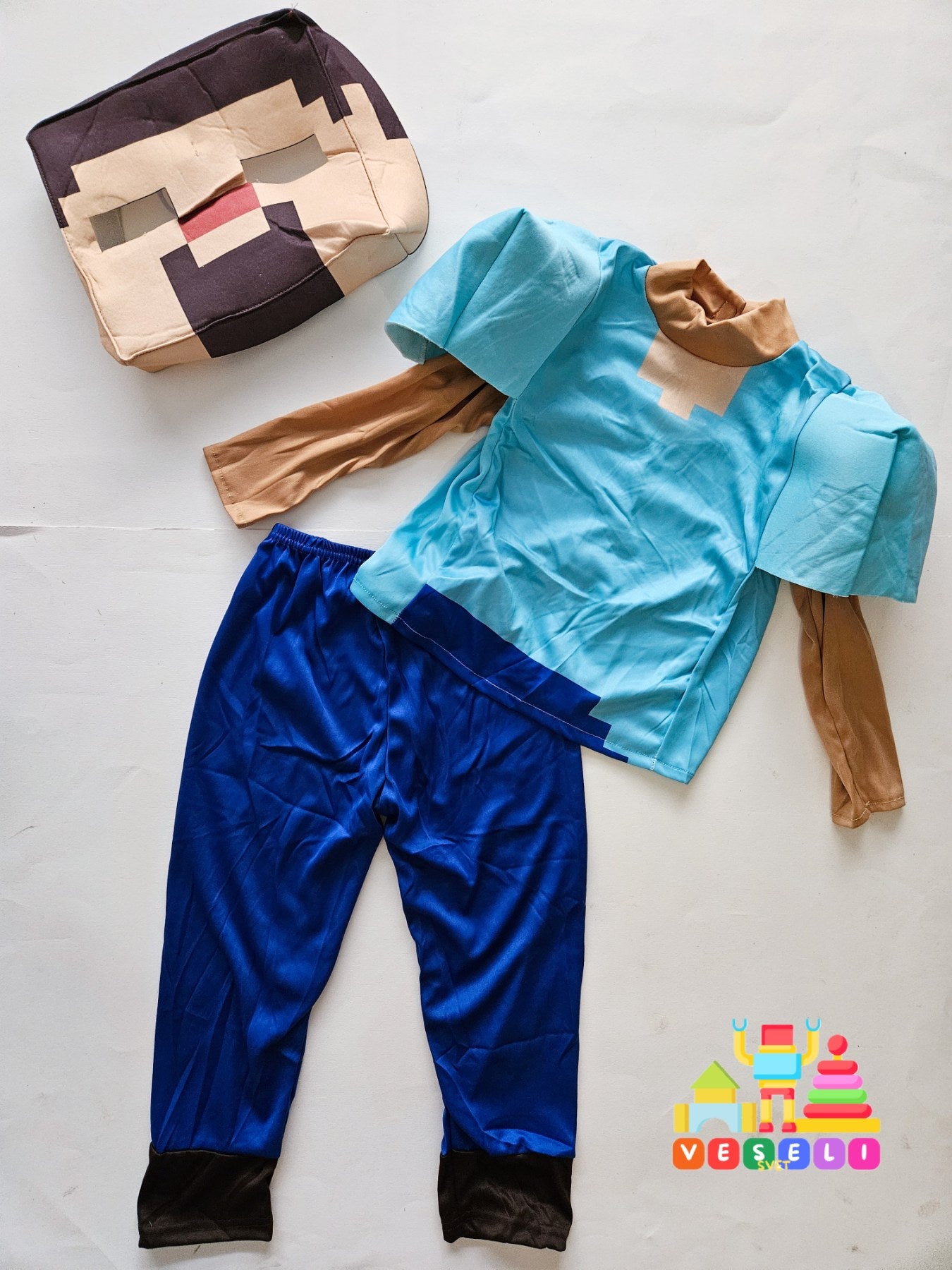 Ovaj fantastičan kostim donosi prepoznatljiv izgled glavnog lika iz igre – plava majica, ljubičaste pantalone i kvadratna maska sa karakterističnim crtama lica.