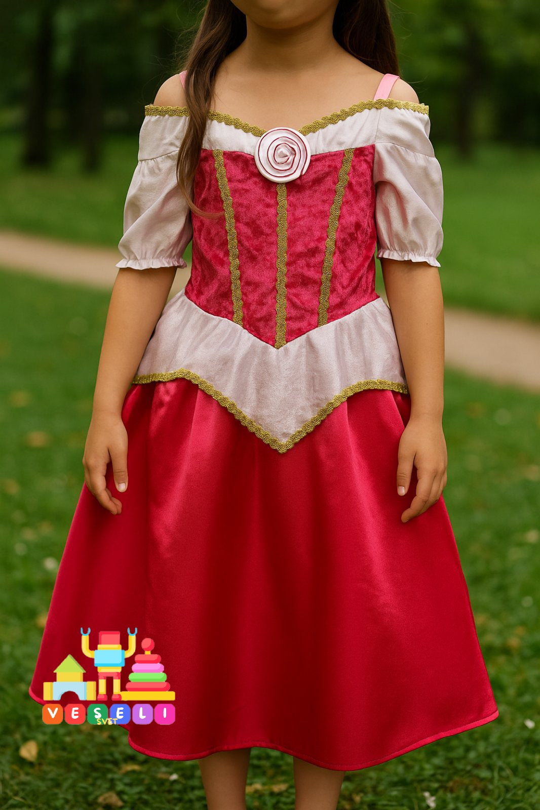 Za devojčice koje maštaju o dvorcima, balovima i čarolijama, ovaj prelepi kostim je kao stvoren! Haljina inspirisana Uspavanom lepoticom učiniće da se svaka devojčica oseća posebno – kao prava bajkovita princeza.